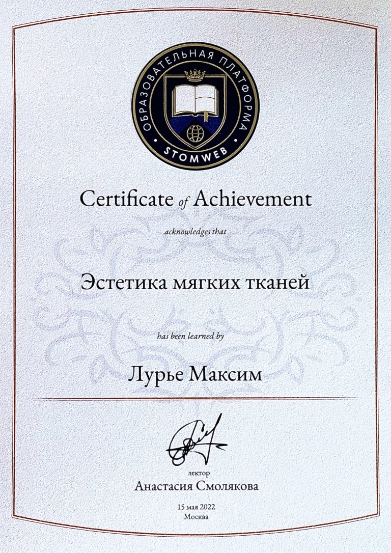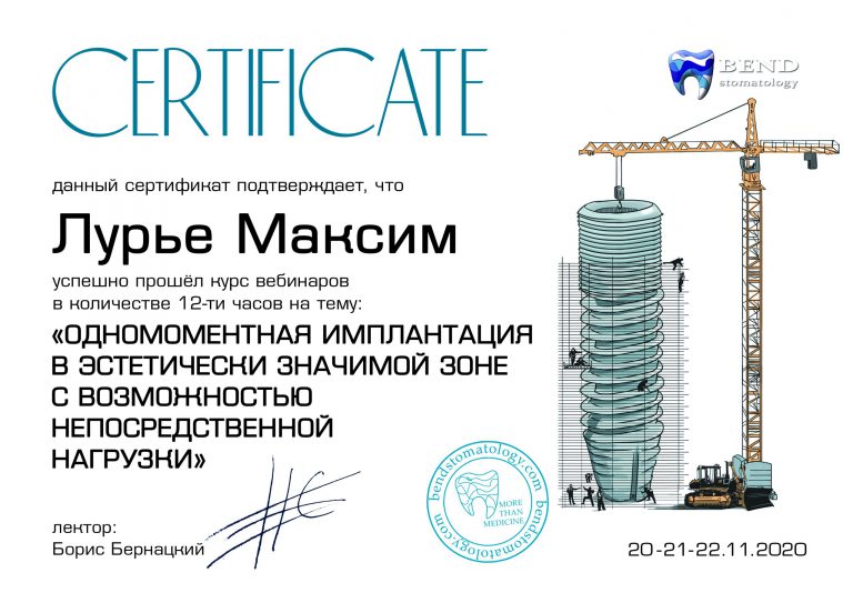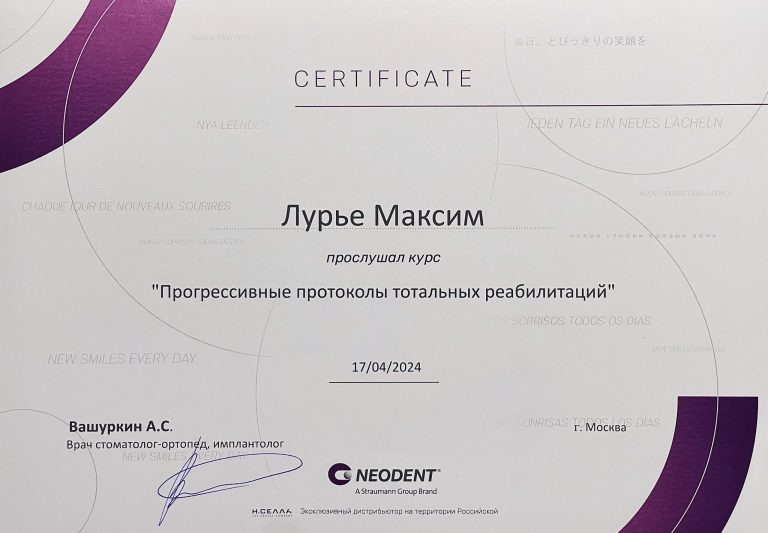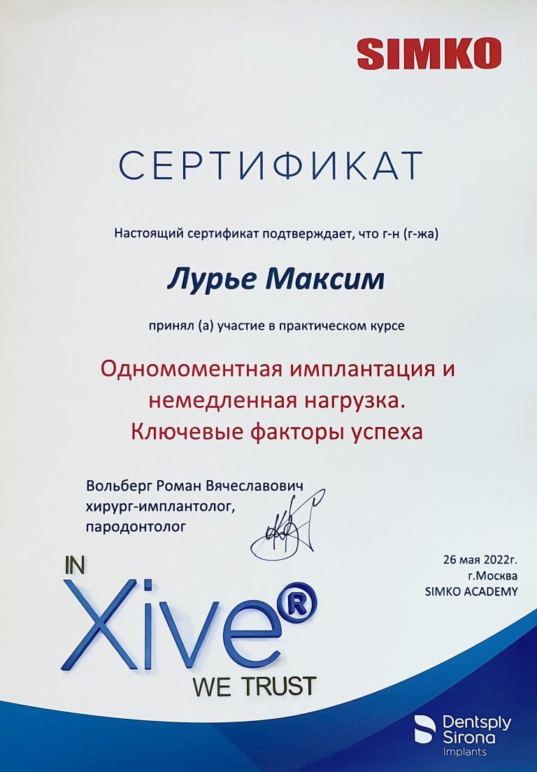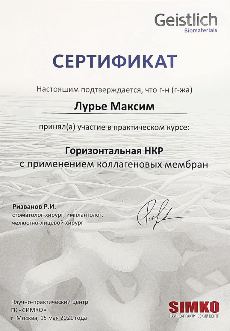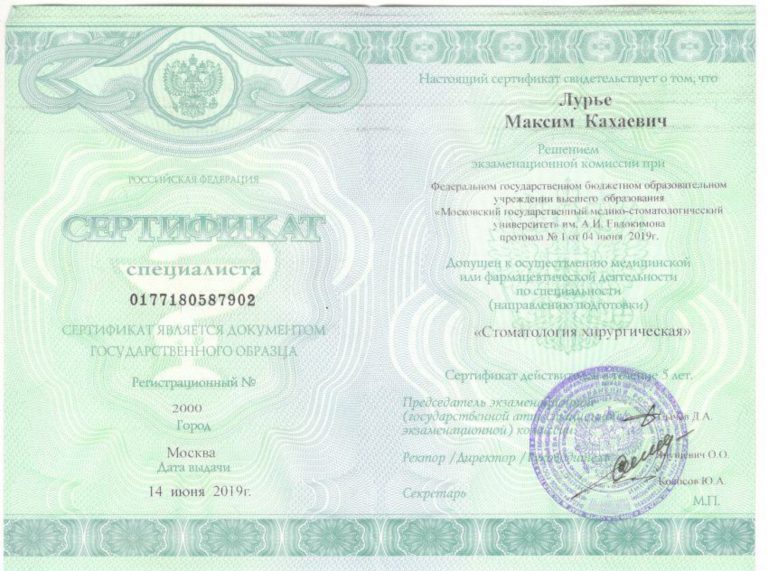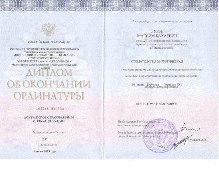 Ординатура по специальности “Стоматология хирургическая”.