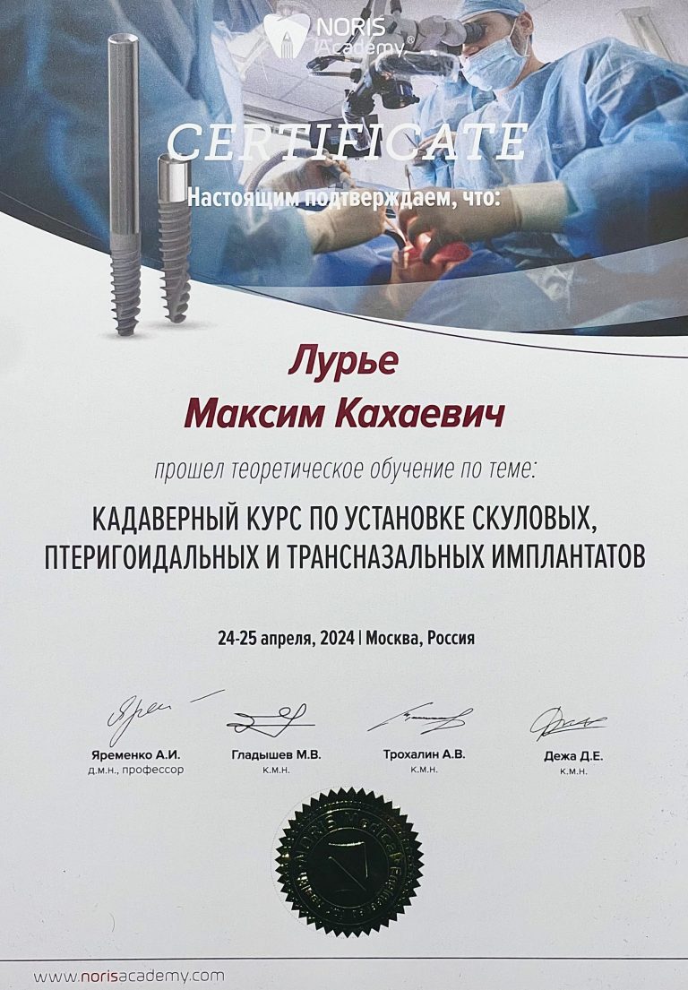 Кадаверный курс: Установка трансназальных, птеригоидальных и скуловых имплантатов