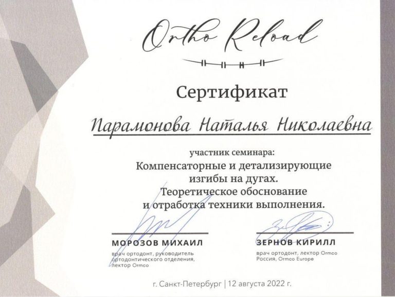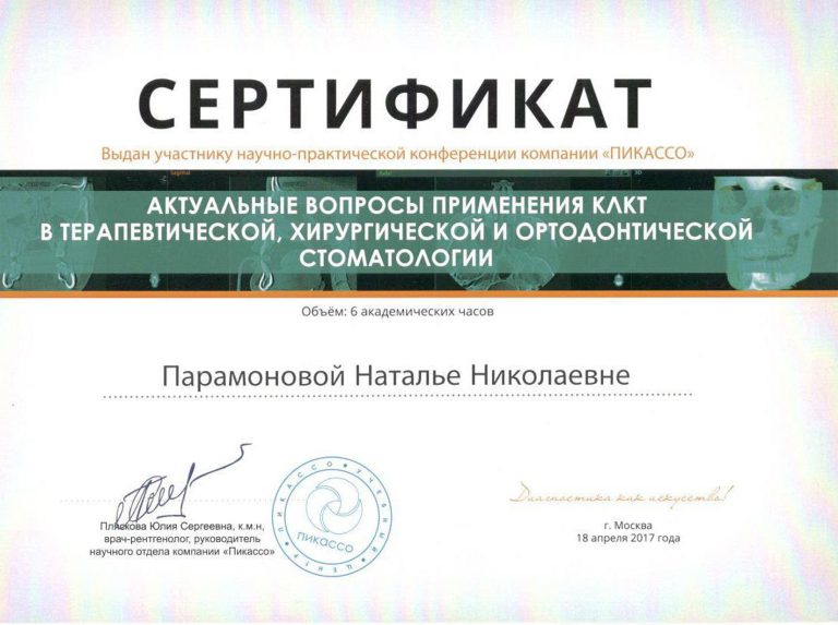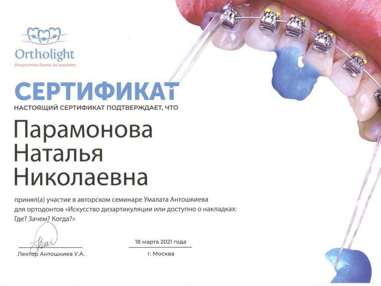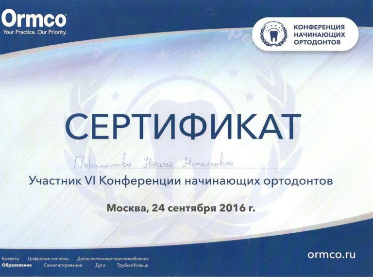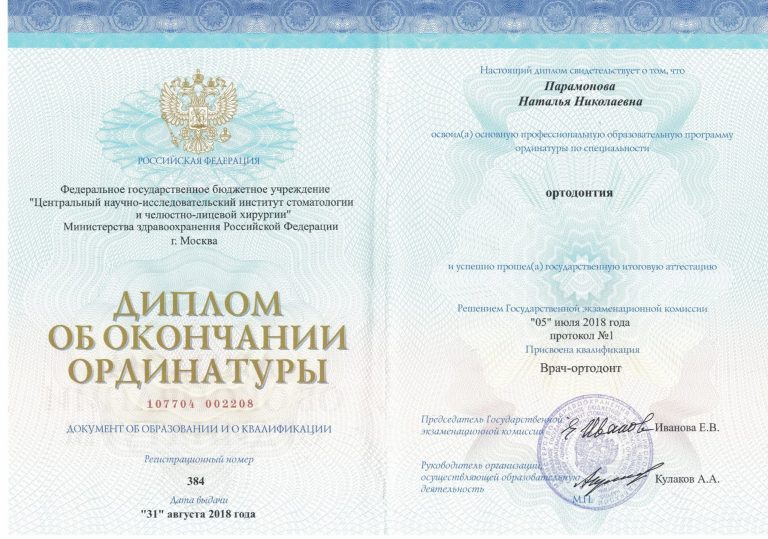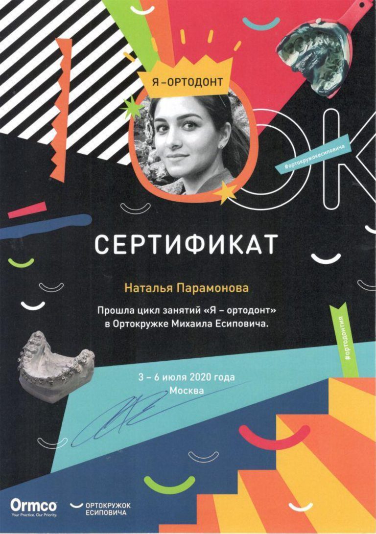 Окончила ординатуру по специальности «Ортодонтия».