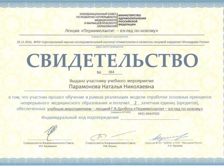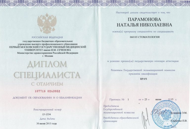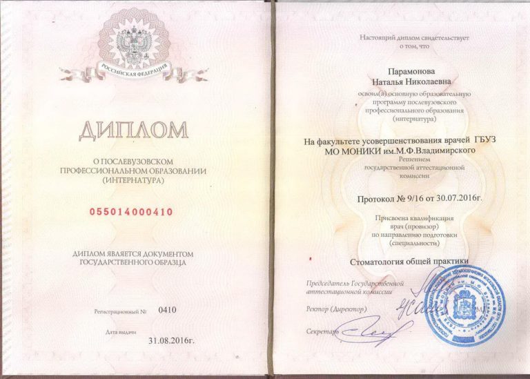 Факультет усовершенствования врачей МО МОНИКИ им М.Ф.Владимирского, специальность «Стоматология общей практики».