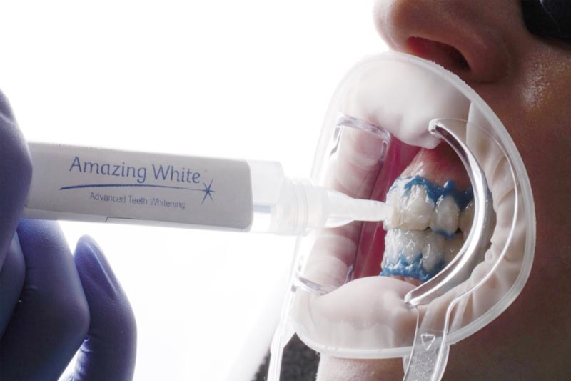 Одним из современных средств отбеливания является система Amazing White. Этот способ основан на применении перекиси водорода в концентрации 16 %. Активируется отбеливающее средство при помощи света с длиной волны 430 – 490 нм. Отбеливание системой Amazing White имеет следующие особенности: