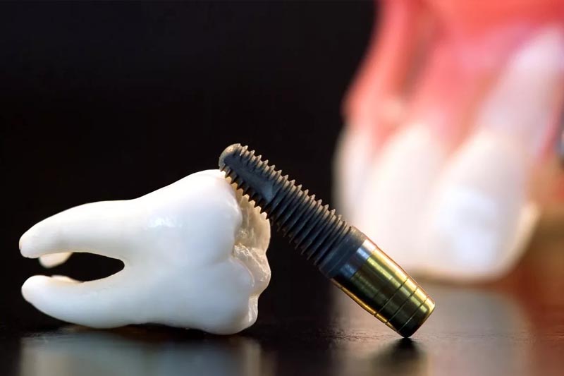 Импланты производятся из инертного и безопасного металла — титана. Он прочно удерживается в кости челюсти за счет особой конструкции и микропористой структуры поверхности. Для улучшения остеоинтеграции (прикрепления импланта к кости) многие производители наносят на поверхность имплантов кристаллы фосфатов, гидроксиаппатита, ионы фтора и другие, которые позволяют кости быстрее врасти в поры на поверхности импланта.